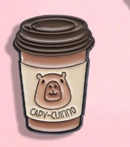Capychino Pin decorativo que combina el diseño de una capibara con un cappuccino, perfecto para los amantes del café y los animales.