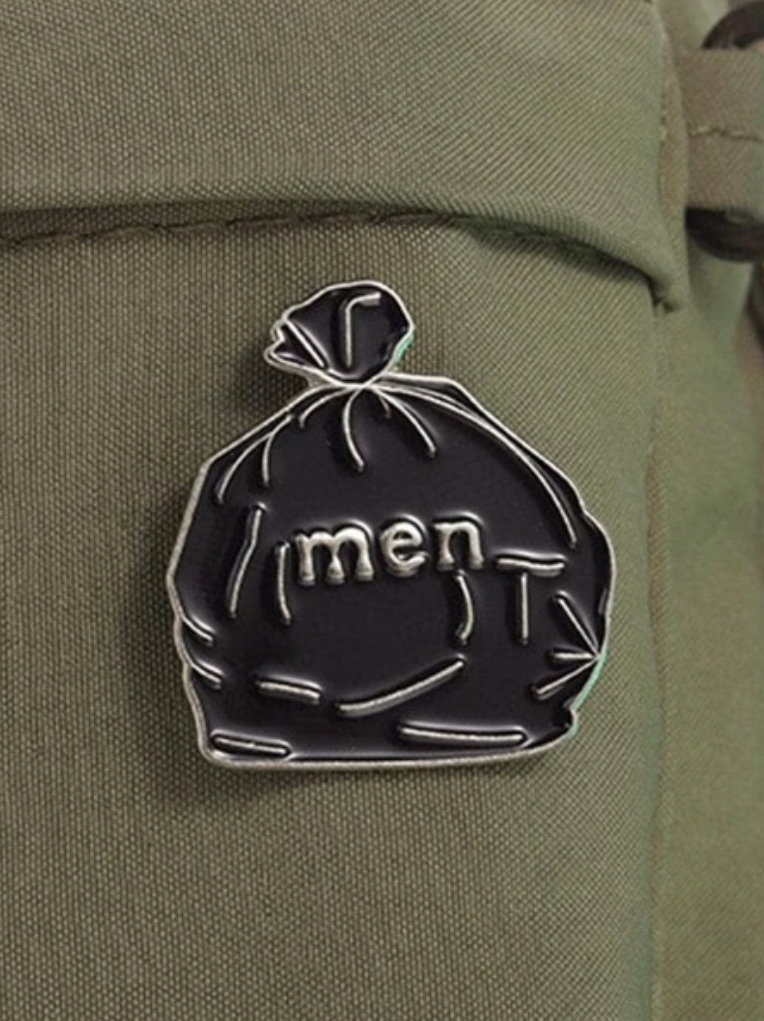 Men bolsa de basura Pin decorativo minimalista que representa una pequeña bolsa de basura, ideal para fans del humor sarcástico.