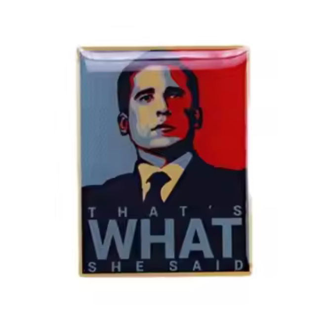 Michael “That’s what she said” Pin decorativo inspirado en la icónica frase “That’s what she said” de Michael Scott en “The Office”.