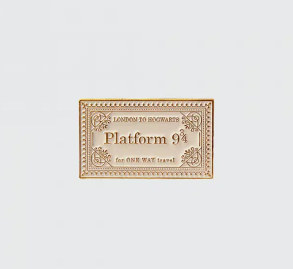 Plataforma 9 3/4 blanca con dorado Pin decorativo minimalista que representa la emblemática Plataforma 9 3/4 de “Harry Potter”, diseñado en tonos blancos y dorados.