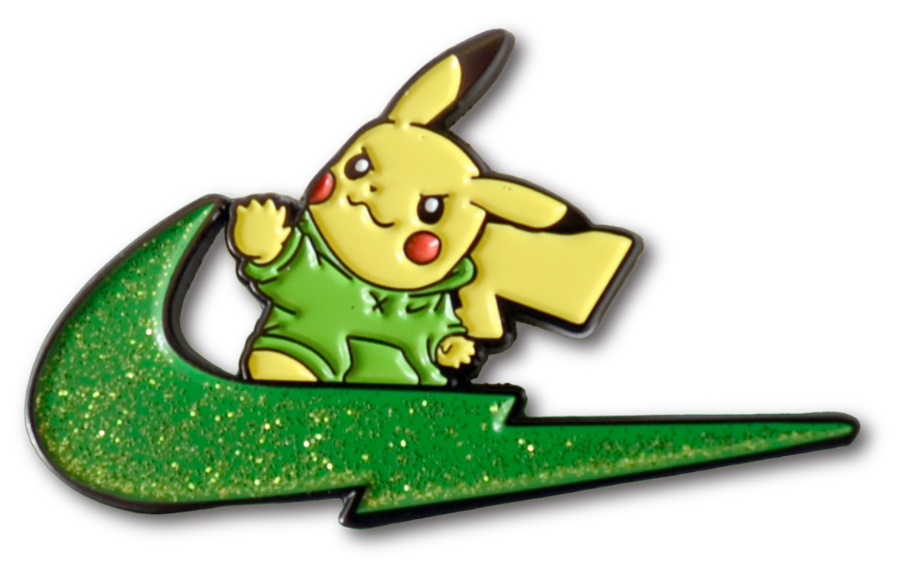 Pokémon Nike Pikachu Pin divertido que muestra a Pikachu con un diseño inspirado en la marca Nike, ideal para fans de Pokémon y la moda.