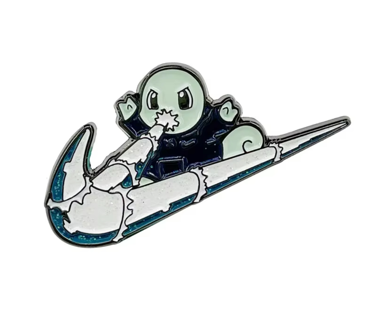 Pokémon Nike Tortuga Pin decorativo que combina a Squirtle con un diseño Nike, creado en un estilo único y moderno.