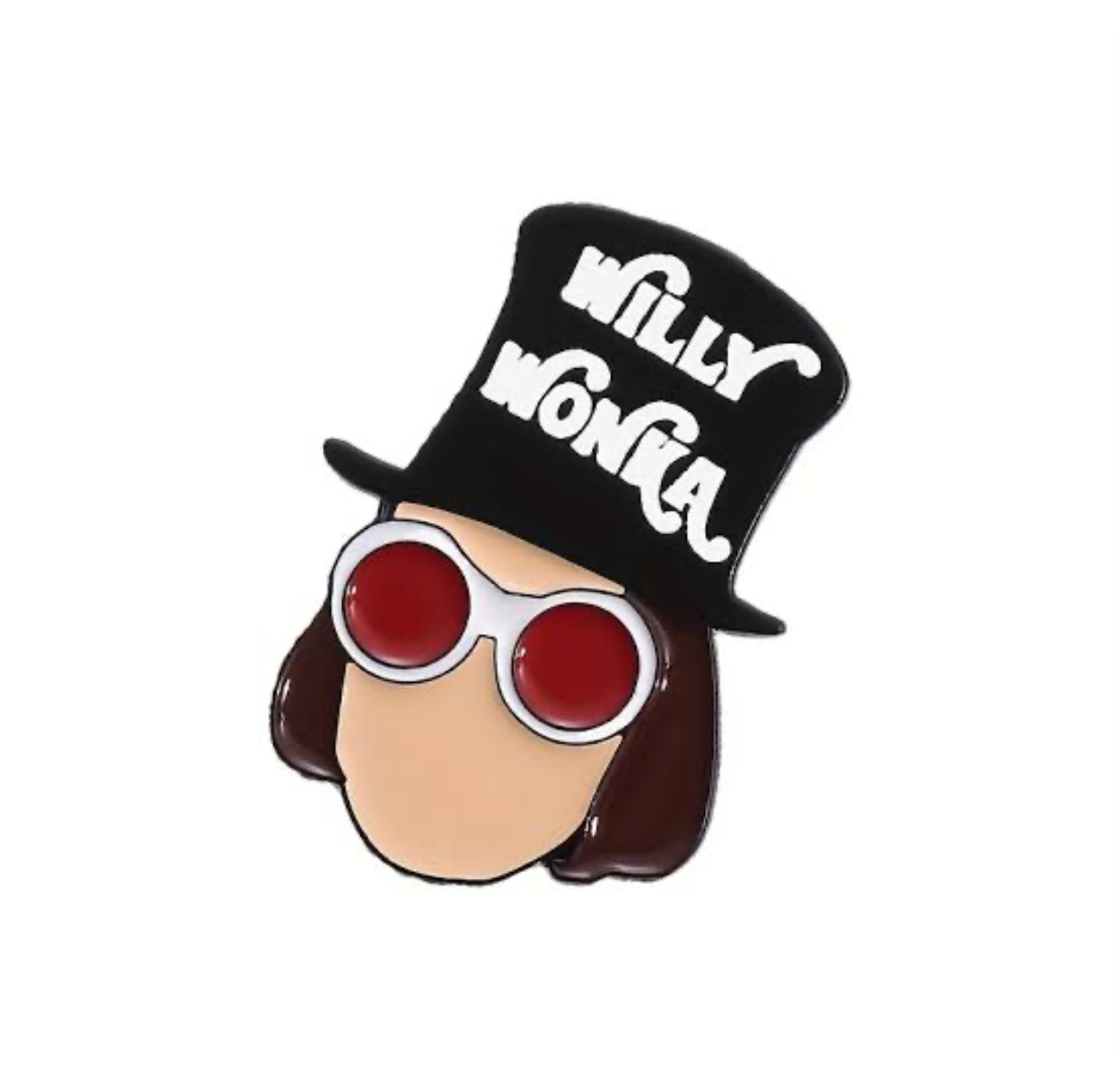Willy Wonka personaje Pin decorativo que representa al excéntrico Willy Wonka, diseñado en un estilo caricaturesco.